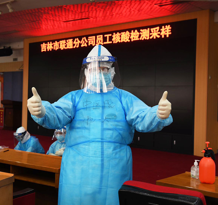 吉林市船营区是6位天使支援的对象。因为争取在最短的时间内为更多人检测,所以任务随时会来。进社区、入村屯,常常是白+黑,凌晨两三点钟回来是常事。另外,入户检测更考验体力。在三级防护下爬楼入户,最大的感受是喘不上来气,完成一次检测任务,衣服都湿透了。在汗渍的浸泡下,有的队员皮肤过敏,脖子、脸上都红了。但不管怎样困难,6位天使都努力坚持,为吉林市提供强有力的支持。不负领导重托,6位天使圆满完成支援任务,于5月22日返回长春。