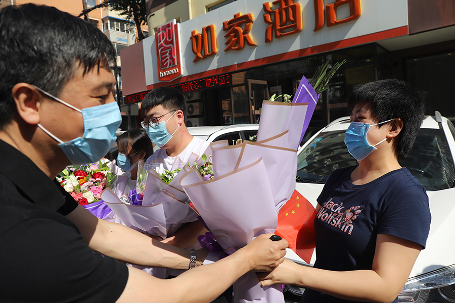 “大家辛苦啦!欢迎回家!”、“这是一次意义非凡的支援,在你们的人生旅程上也是浓墨重彩的一笔。”......医院领导班子成员为6位天使送上鲜花,送上掌声,送上关怀的话语。红旗飘起来,院旗扬起来,条幅拉起来,美美哒,大家一起拍一张纪念照,亲切而又温暖。临回家前,领导们给6位天使下了一道“命令”——回家好好休息!