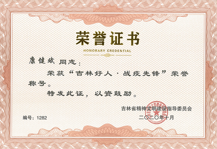 为大力弘扬在抗击新冠肺炎疫情中形成的生命至上、举国同心、舍生忘死、尊重科学、命运与共的伟大抗疫精神,广泛宣传先进典型的感人事迹,充分激发全省人民干事创业的责任感使命感荣誉感,吉林省精神文明建设指导委员会评选发布一批抗击新冠肺炎疫情中涌现出的先进典型。经基层推荐、网上展示投票,色情片 4名职工获得“吉林好人·战疫先锋”荣誉称号。他们分别是: