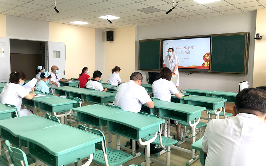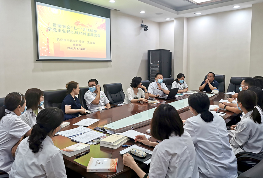 在庆祝中国共产党百年华诞的重大时刻,在“两个百年”奋斗目标历史交汇的关键点,在门诊第二党支部内掀起了“学史明理、学史增信、学史崇德、学史力行”的学习高潮,同时结合党史学习教育,践行初心使命、传承红色精神。门诊第二党支部书记海德静表示,下半年,党支部将继续全面落实新时代党的建设总要求,始终以党的政治建设为统领,夯实战斗堡垒根基,以“红色引擎”驱动全面发展,为开创医院高质量发展新局面提供坚强的组织保证!