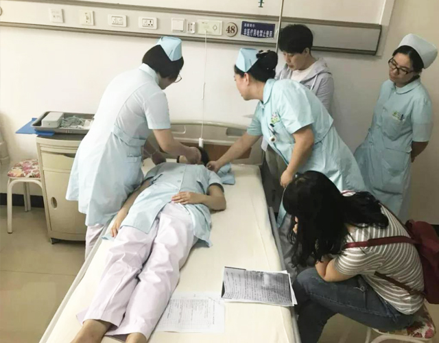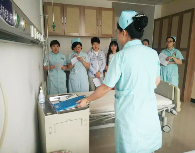下午2点,科内护士已全部到位,有工作的同事轮流观看练习,护士吴晗每一步都细致地讲解。