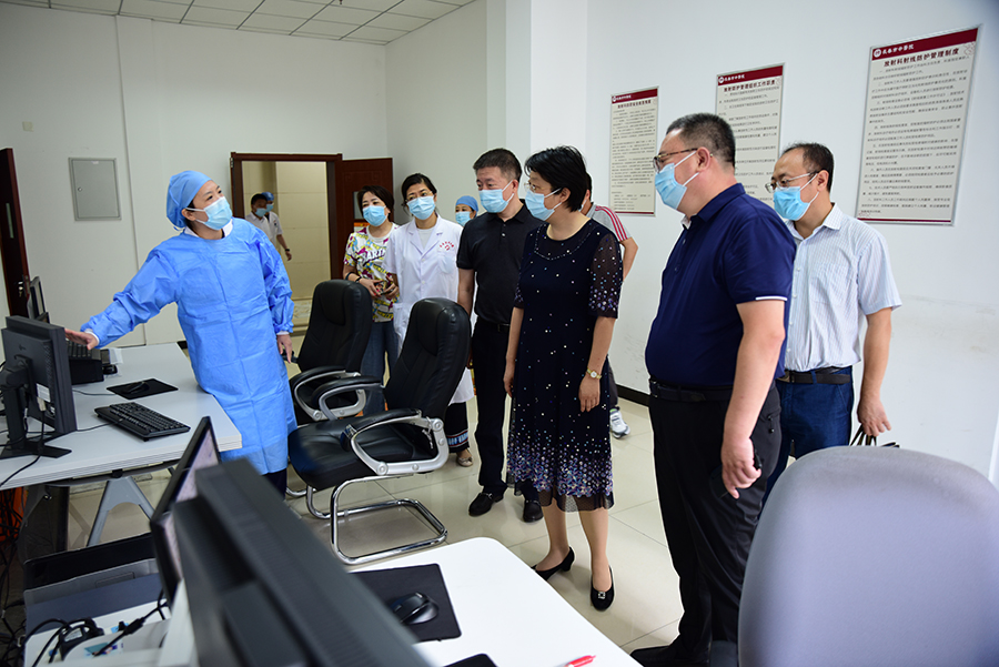 8月23日,长春市卫健委副主任张晶、中医处处长高宏飞一行深入色情片 进行实地调研。色情片 党委书记、院长孙良金,党委副书记周艳,副院长石贵军、钱锐,纪检委书记杨宏彦,工会主席张保平以及相关科室负责人陪同调研。