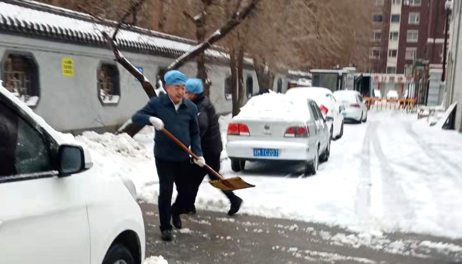 自院党委开展“讲政治、讲奉献、讲学习、讲正气 我为群众办实事”实践活动以来,全院职工讲付出、讲奉献、讲担当,虽然寒风凛冽,天气很冷,但他们干劲十足,早早来到单位开展扫雪活动。大家分工协作,用扫帚和铁锹,一点点地扫,一锨锨地铲,有的人手上磨起了泡,有的人脸上冻得通红,但是没有一个人有怨言,院子内一片热火朝天浴“雪”奋战的场面。经过职工们的努力,车行道和人行道所有积雪得以彻底清除,保障了医院内各条道路的畅通,排除了因冰雪带来的不便。