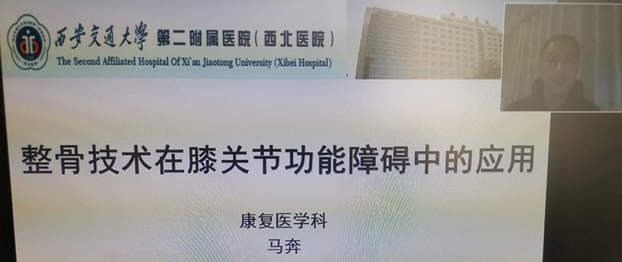 西安交通大学第二附属医院康复医学科治疗师长马奔围绕《整骨技术在膝关节功能障碍中的应用》进行了讲解。