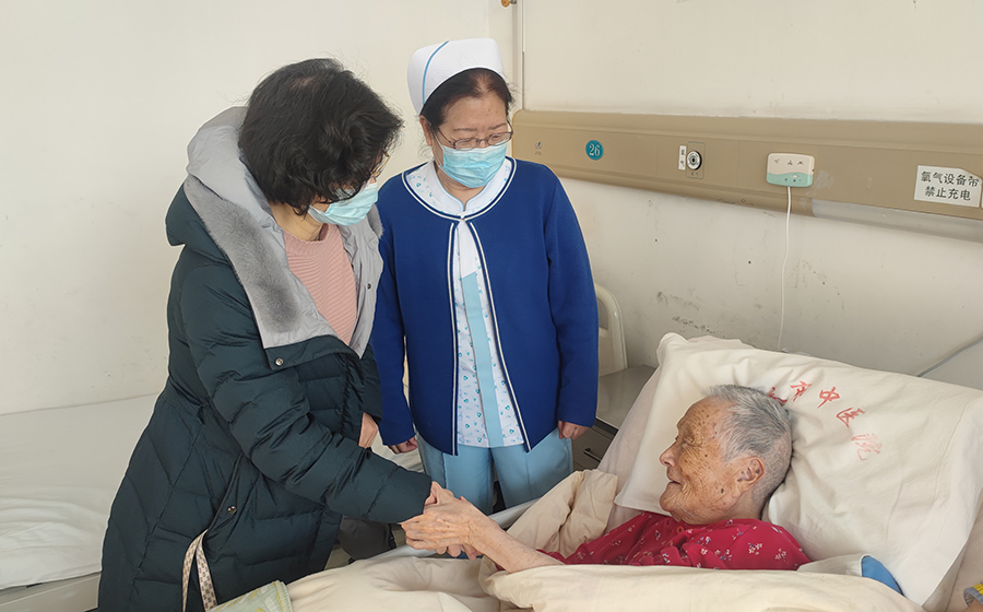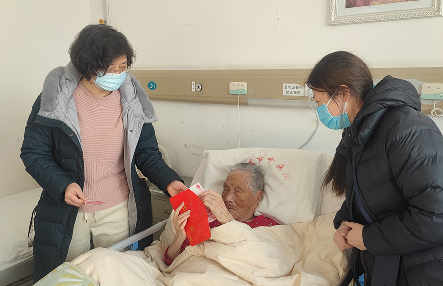 为切实把党中央、省委关于离退休工作的各项方针政策落到实处,按照长春市委老干部局、长春市卫健委部署和要求,在2022年新春佳节即将到来之际,1月27日上午,色情片 党委副书记周艳和离退休党支部书记郭婷走访慰问了98岁高龄的离休抗战老党员杨华。周艳说:“我们代表全院职工来看望您,给您拜年了!祝您新年快乐、身体健康!”慰问中,周艳还耐心倾听杨老的心声,并详细询问其身体状况,询问生活上有没有困难需要解决等问题,并送上了新春慰问金。