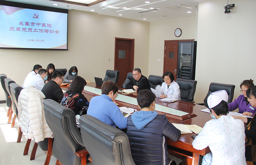 为认真贯彻落实长春市卫健委发展党员工作调度培训会(以下简称培训会)会议精神,做好2021年度发展党员质量评估相关工作,提升发展党员工作规范化水平,2月23日13时,色情片 党委召开党员发展工作培训会。党委书记、院长孙良金,党委副书记周艳,党办主任王雪姣,党委组织员毕海波和全体党支部书记参会。