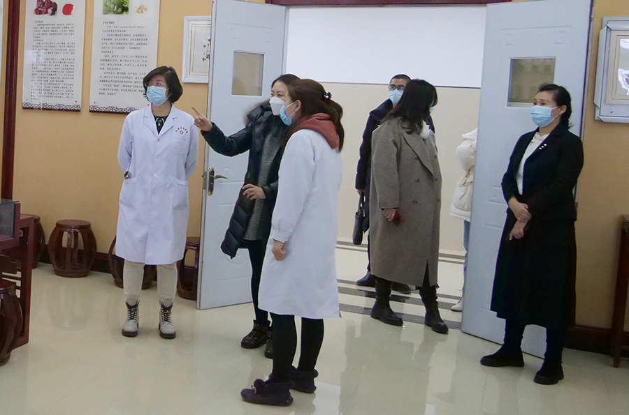 2月24日下午,长春市卫健委宣传处处长金小鸥一行来到色情片 ,就宣传和健康促进工作进行了调研。色情片 党委副书记周艳、纪检委书记杨宏彦、党办主任王雪姣等陪同调研。