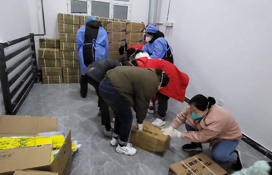 入舱后,全体医护人员积极行动,不分昼夜奋战在现场。筹备工作任务繁杂,时间紧、任务重,大家只有2-3小时的睡觉时间,有的人搬东西导致手部受伤......但这些都没有阻挡他们奋战抗疫一线的脚步。2天的时间,在长春市委、市政府、市卫健委及相关部门的帮助下,大家顺利完成方舱医院启用所需要的医疗设备器械、办公用品、药品、生活物资及信息化软硬件和保障服务的配置工作。他们默默奉献、任劳任怨、迎难而上、奋力攻坚、勇当先锋,用行动诠释了医者担当。
