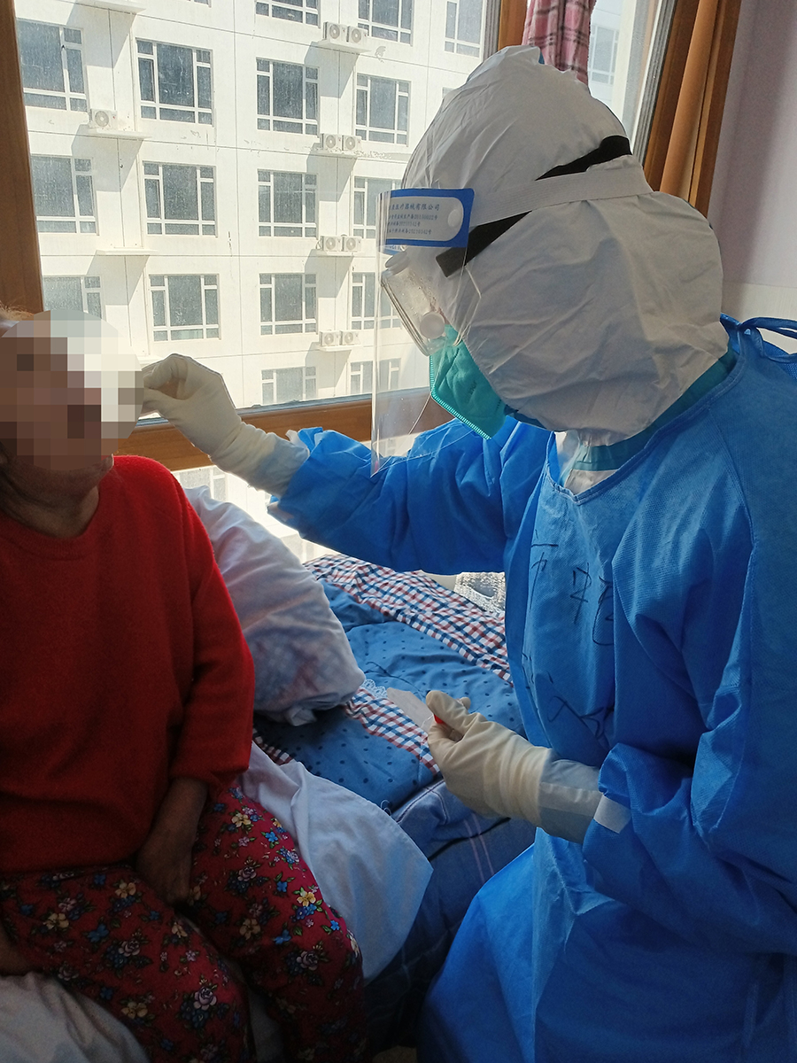 患者摘下口罩,暴露口鼻,张开嘴。她们将棉签探进口腔,擦到病人咽后部,这是咽拭子采样的基本步骤。对此,有的患者会反射性地恶心、咳嗽,甚至呕吐。而她们则会直面患者开放的气道,与病毒“面对面”接触。厚厚的防护服下,大家很快一身汗,护目镜上的雾气也陆续化成水。咬着牙,坚持着,加速采样,大家首战告捷的时候已是次日深夜。