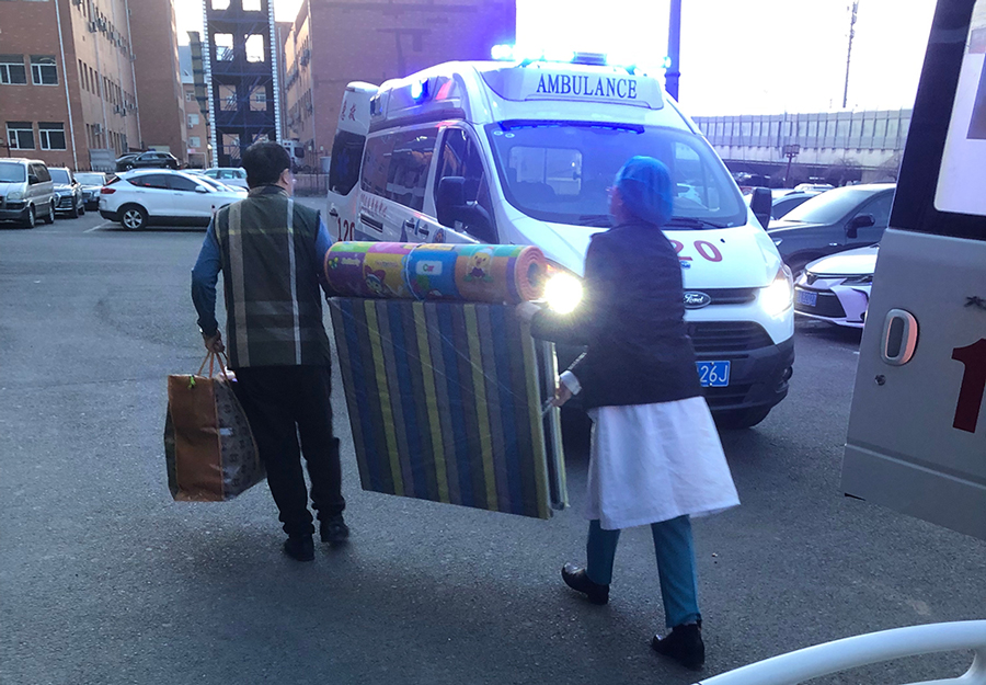 4月7日,接到上级指令,色情片 总部将作为“黄码医院”收治患者。当晚21时30分至次日早6时许,曹亚丽带领在岗的医务人员连夜护送在院24名普通患者和31名重症患者安全离院,用最短的时间完成了患者转运工作。在时间紧、任务重、人员紧缺的情况下,曹亚丽的电话不出意外被“打爆”了,每天接电话无数,常常左手手提电话,右手固定电话,可谓“左右开弓”,最多一天接打电话200多次。
