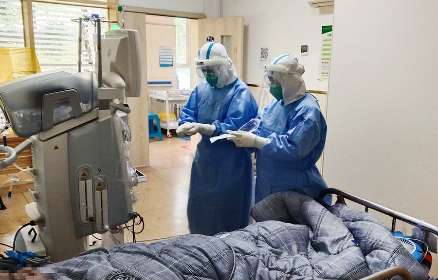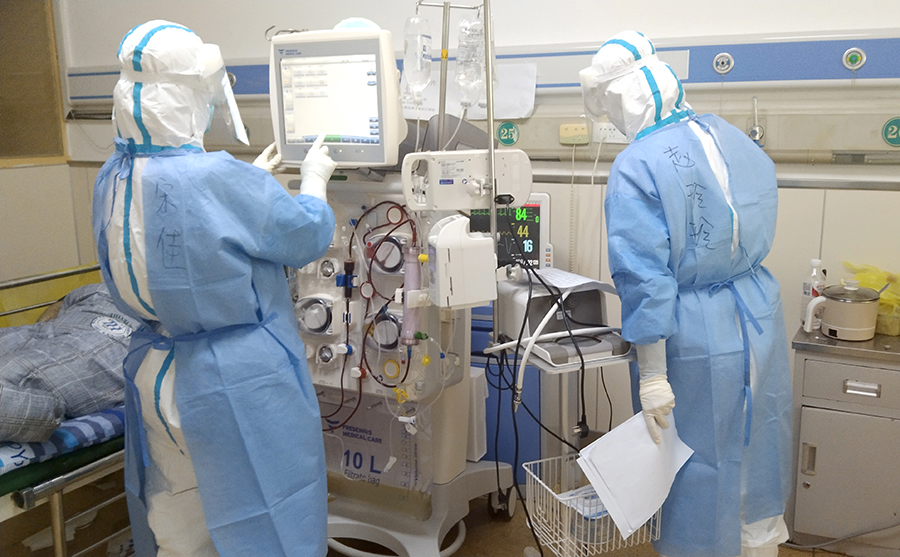 大家进驻长春市传染病医院后,有一位重症患者的病情复杂,意识模糊,躁动不安,无法正常配合医生治疗。医护人员克服了重重困难,积极进行治疗前的准备,稳定患者的情绪,全力抢救,进行了有效的血液净化治疗。6个小时后,患者病情好转。医护人员拖着疲惫的身躯露出了久违的笑容。随后,大家又紧急投入到紧张的救治工作当中!
