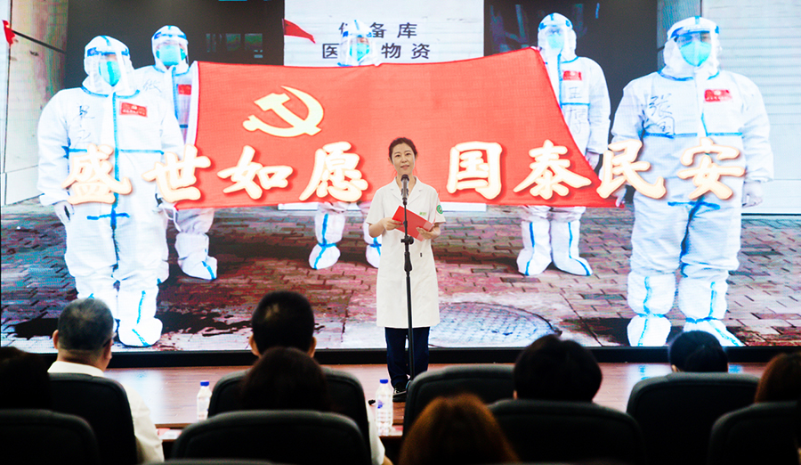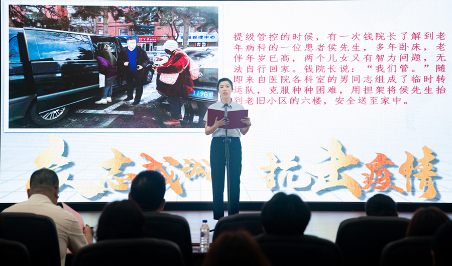 活动中,来自总部收款处的王月和东部肺病科的沈洋洋用真情实感为大家讲述了钱锐副院长和张保平主席的抗疫事迹。