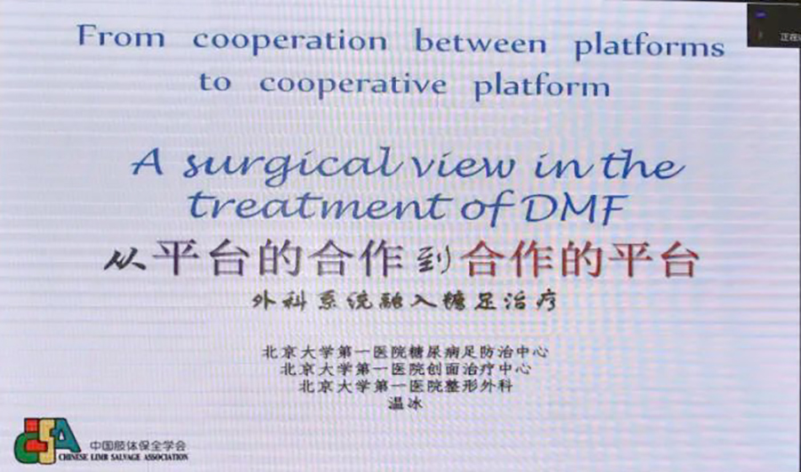 针对“糖尿病足到底是内科病还是外科病?”这个问题,北京大学第一医院创面治疗中心主任温冰聚焦糖尿病足,通过线上为大家带来了《从平台的合作到合作的平台——DFU在中国外科的诊疗与管理》的主题报告。他对糖尿病足患者实施筛查管理、溃疡后管理、预后管理的临床治疗模式等方面内容进行了详细解读。