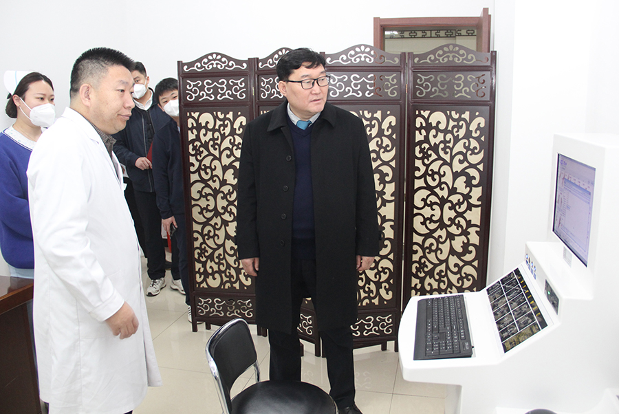 林长青副院长一行先后到煎药室、党建文化长廊、治未病中心等地进行实地调研,一路上与石贵军院长进行深入交流。
