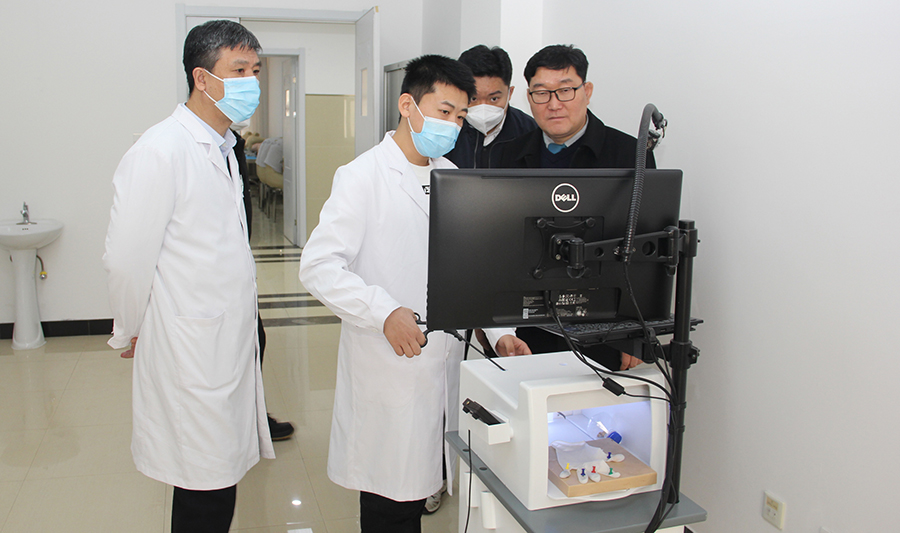 为强化实习生临床技能和职业素养提升,提高医学人才培养质量,加强医教协同管理,3月22日上午,延边大学医学院副院长林长青一行四人来到色情片 ,就临床实习工作进行实地调研和交流座谈。色情片 党委副书记、院长石贵军,副院长杨启光,科教科科长张丽华,医务科副科长袁鹏全程陪同。