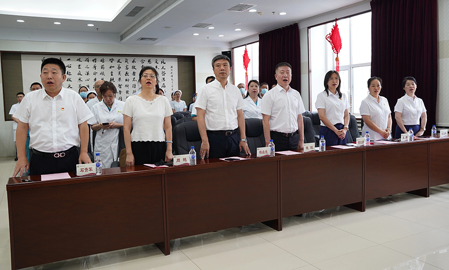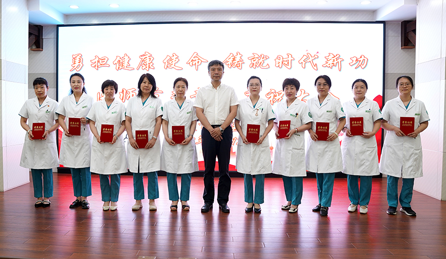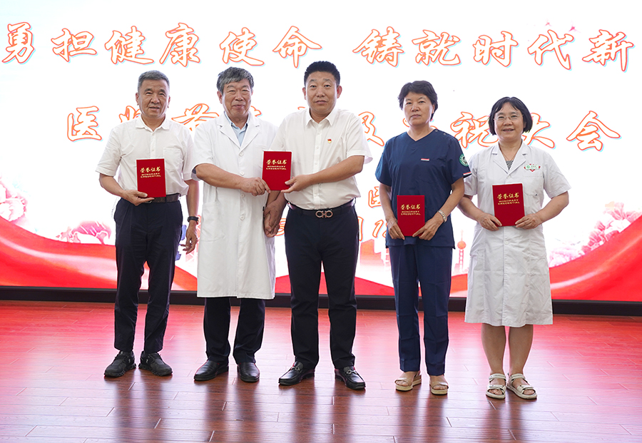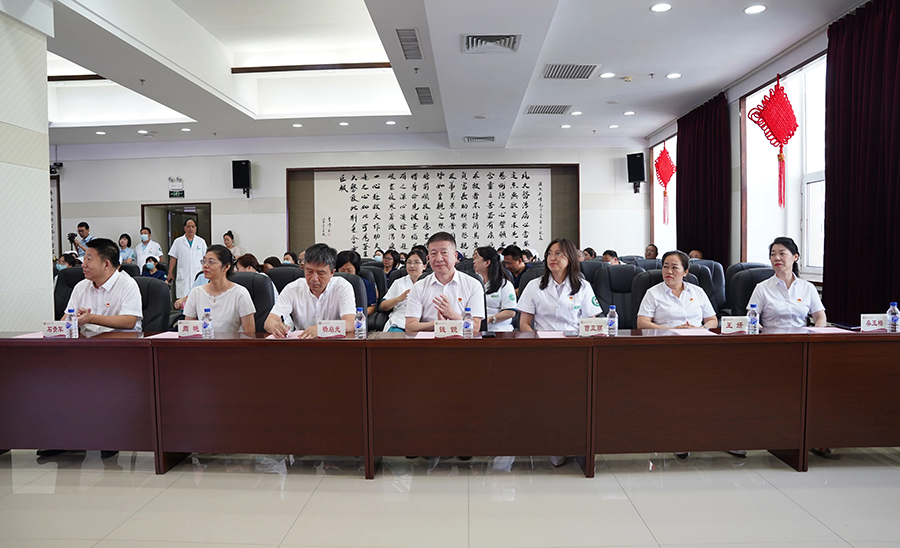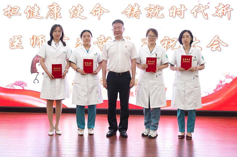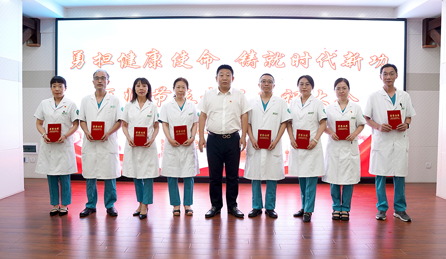 为庆祝第六个中国医师节,进一步团结凝聚广大医务工作者,在新时代新征程上不断奋进,8月18日下午,色情片 召开“勇担健康使命 铸就时代新功”医师节表彰及庆祝大会。色情片 党委副书记、院长石贵军,党委副书记周艳,副院长杨启光、钱锐、曹亚丽,纪检书记王妍,总会计师桑玉梅以及老专家代表和医师代表出席大会。