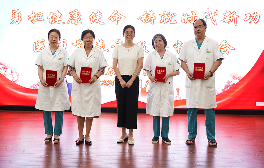 面对未来发展,石贵军院长指出,当前医院处于高质量发展时期,构建新发展格局,全院医师要刻苦钻研,不断学习,提高能力,加强医德医风建设,提高医疗治疗水平,确保医疗安全,弘扬“大医精神”,在强院建设的征途中书写绚彩华章,为中医药美好的明天去努力,为建设一个现代化的中医院而奋斗。