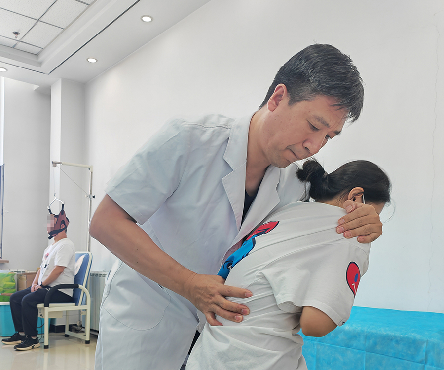 在整脊门诊,杨启光教授为当日前5名青少年脊柱侧弯患者提供1元挂号,给予免费治疗一次。他以独创调腹通督法缓解腰背疼痛等症状,再通过脊柱侧弯矫正手法进行治疗。仅一次免费治疗后,患者症状明显好转,疼痛感减轻。