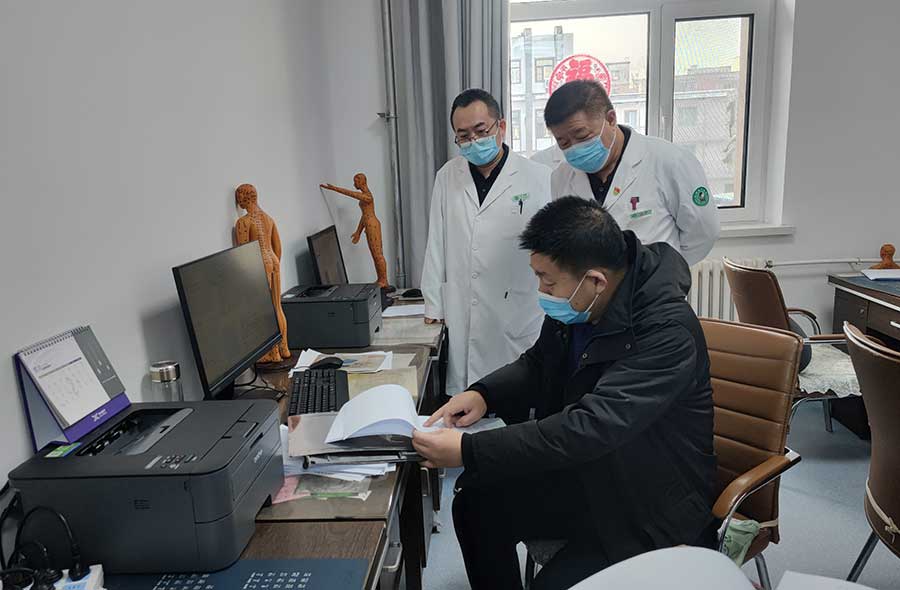 在平阳部,石贵军院长分别到疗区、门诊、伙食科、氧气间等地进行调研指导,特别对急诊急救药物储备、氧气房日常工作、卫生问题以及消防、供暖等后勤工作提出要求,并对医疗安全工作进行实地督导检查。