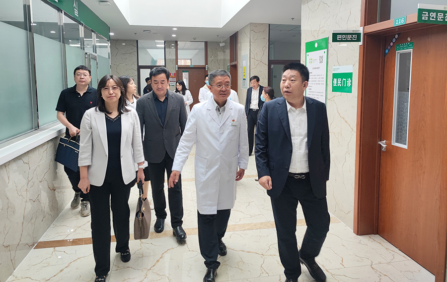 在图们市中医院(朝医院)党支部书记姜哲三等领导的陪同下,石贵军书记一行参观了门诊、康复科以及疗区等地,详细询问各科室运营状况、技术特色等,并对医院在硬件设施和环境建设上的改善表示肯定。