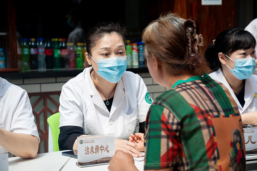 义诊中,来自3个院部多个科室的中医专家为前来咨询的百姓把脉问诊,为大家现场辨证,根据实际情况,制定个性化的贴敷方案,或开具“生化汤”代茶饮。贴敷现场,医护人员细心地为大家贴上“三伏贴”,并详细讲解贴敷时间、选穴位置以及贴敷后的注意事项等,确保大家都能得到最佳的贴敷效果。此外,义诊过程中,针对百姓的健康问题,专家们充分发挥专业优势,认真进行解答,按照不同症状提出合理诊疗建议,并进行用药指导。