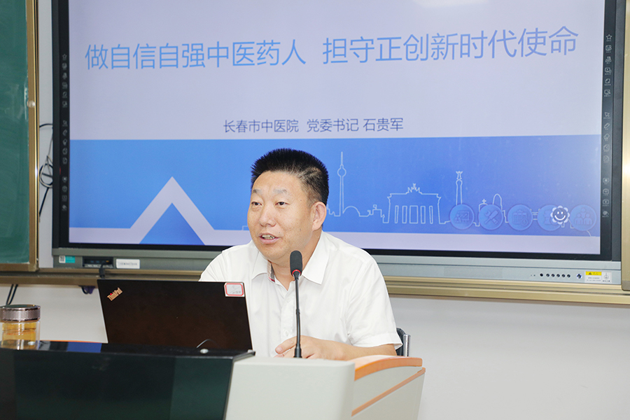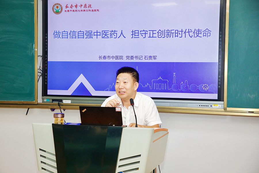 “纸上得来终觉浅,绝知此事要躬行”,石贵军书记指出,大家要坚定自信,传承岐黄,相信中医、热爱中医、传承中医、发展中医,把中医当做自己的事业来做;要扎根中医,踏实求学,全面学习中医的经典著作、临床理论,勤于思考,善于总结,勇于实践,脚踏实地,一步一个脚印,不浮躁,不急功近利;“大学之道,在明明德,在亲民,在止于至善。”要牢记“继往圣绝学,救生民疾苦”的理念,做到知行合一,有仁术、有医德,为中医立言,为健康立功,为生命立德;要保持长期学习动力,持续精进自己,提升自身能力,成为中医药事业的栋梁之材。
