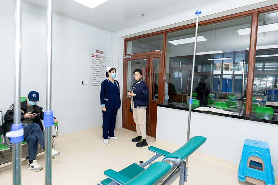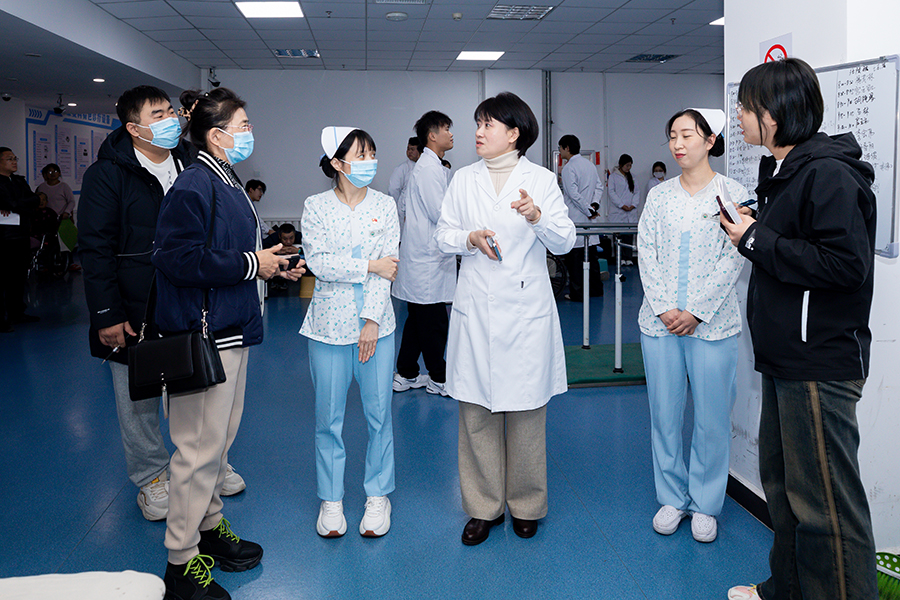 静点室、抢救室、经典病房……参观中,一行人不时提问,了解治疗技术和护理服务亮点。