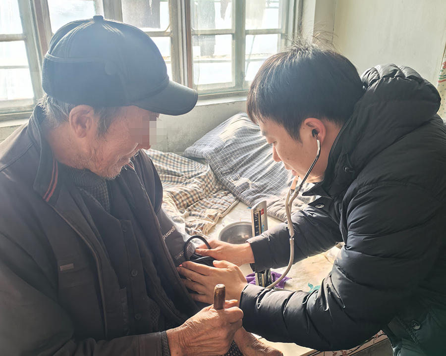 院党委高度重视此次走访慰问活动,委派叶景林医生为家庭成员免费测量血压,现场把脉,仔细询问他们的身体状况和既往病史,提出个性化治疗意见。走访期间,毕海波主任认真填写扶贫手册走访慰问记录,并结合实际向脱贫户详细解读帮扶政策。