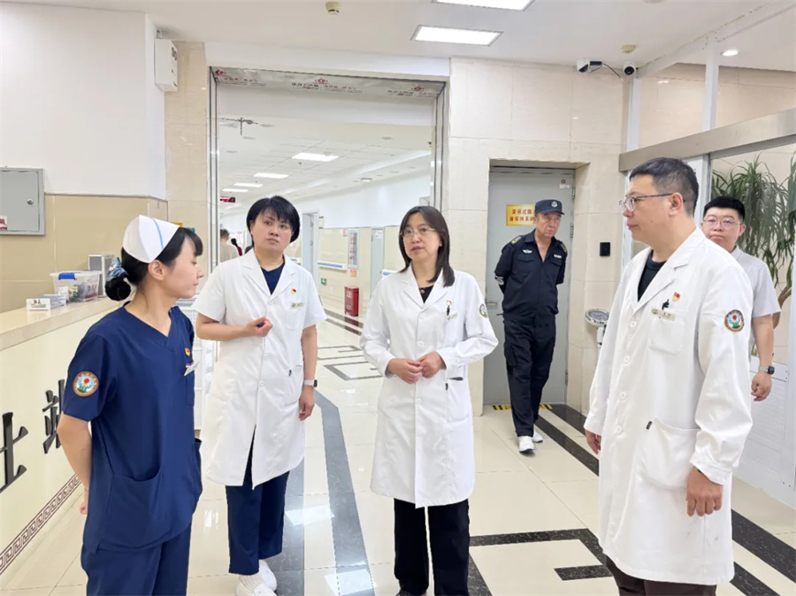 随后,曹亚丽副院长率领医务科、护理部、医保科、感染科、信息科、总务科及保卫科等多个核心职能科室负责人,对总部各疗区、门急诊区域、药房以及消防控制室等关键部位展开了全面细致的巡查工作。