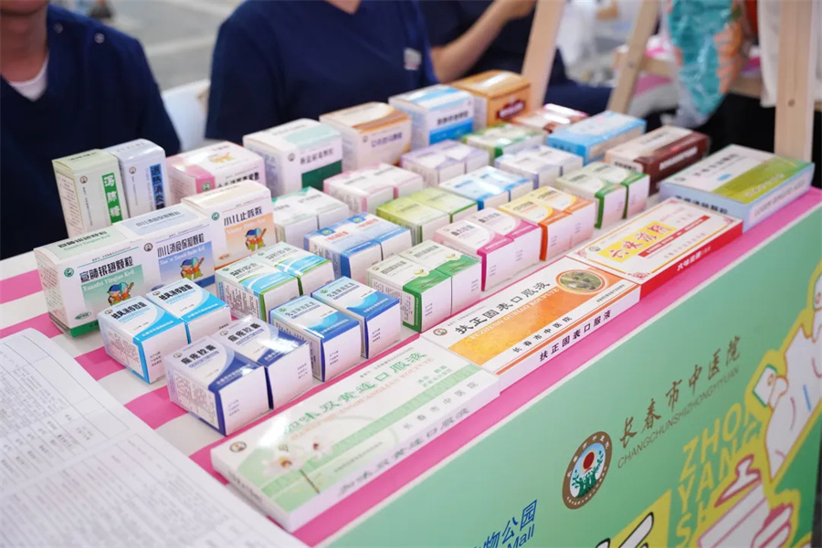 市集不止有“医”,更有“趣”!中医主题文创区里,抱枕、书签等文创产品,经典的院内制剂,美味养生的吉参能量饮、长夏养生茶,吸引众多“养生控”驻足咨询、品尝。