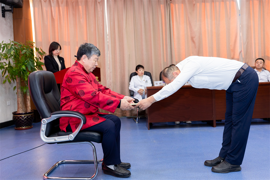 仪式现场,来自双阳区中医院、九台区中医院、榆树市中医院等多个县区中医院及医疗卫生机构的20名弟子,依次向赵继福教授呈递拜师帖并签署协议,正式确立师徒名分。