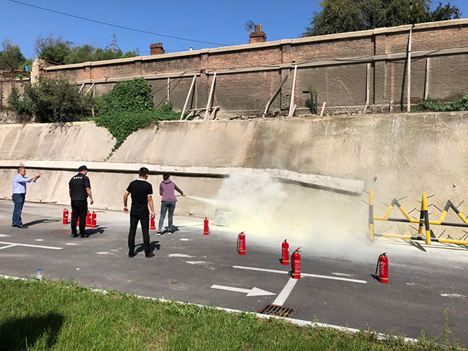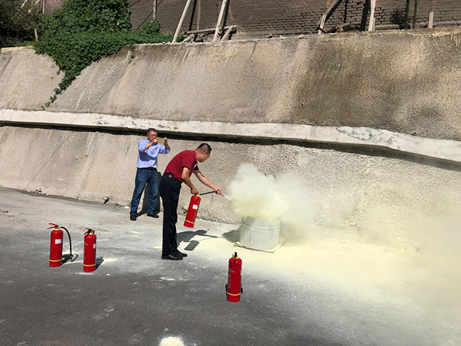 9月6日上午,由保卫科科长丰杰和总务科科长方岩共同组织后勤人员进行灭火器使用的培训。