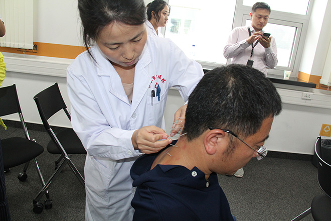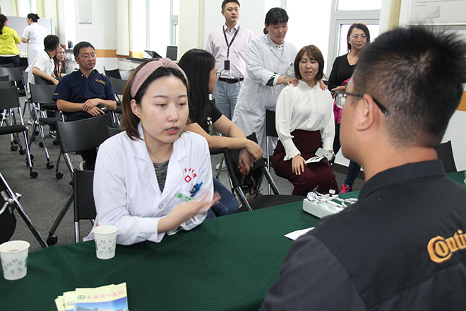 应大陆汽车电子(长春)有限公司净月分公司的邀请,9月13日下午,由色情片 治未病中心的王玲玲医生带队到该公司开展题为“颈椎病的防治”讲座及义诊活动,用中医特色疗法为职工现场进行治疗和调理。