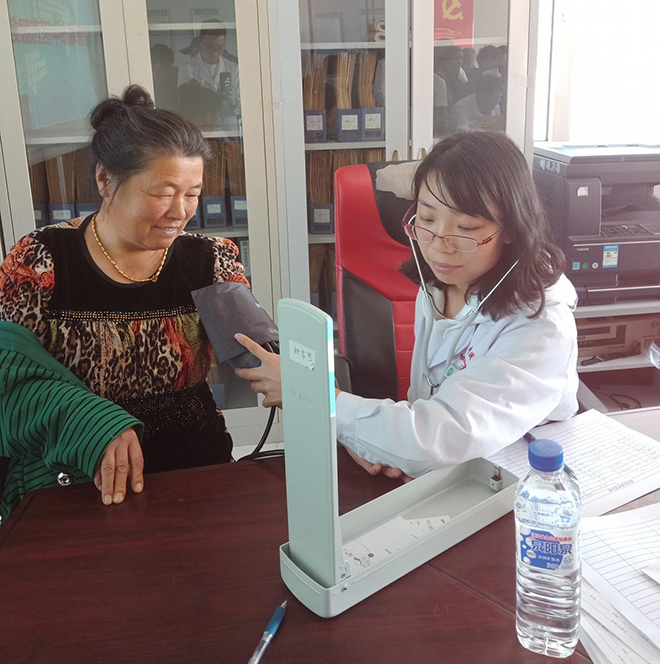 当义诊医疗队到达四家乡卫生院时,已有很多当地村民早早就等候在卫生院的活动室里。在活动现场,义诊有序进行,医护人员首先为村民们免费测血糖、量血压,然后分诊到相应的义诊医生那里,医生们通过望、闻、问、切,耐心细致的为村民们诊断疾病,并解答就诊群众的各种问题。
