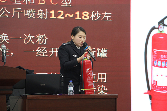 会上,长春市七进消防知识宣传中心的吴迪教官做专题消防安全知识讲座。吴教官用现场互动及结合真实火灾案例的方法,详细讲述了生活中如何安全用电、火灾的应急处理、火灾逃生自救的方法、楼层起火的逃生方法、灭火器的使用方法、天然气管道起火的处置方法、公交车起火逃生方法、遇暴雨驾驶员打不开车窗的处置方法等安全知识,营造了“人人知消防,人人会消防,人人爱消防”的安全意识氛围。