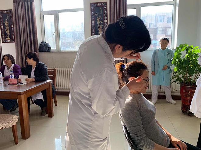 义诊活动现场,老年病科邢秀丽主任、眼科韩光主任、针灸科张亚菊主任、心病科陈淑玲主任医师、肛肠科于波主任医师、糖尿病科李戈副主任医师、脑病科吕宏魁主治医师、外科张喜峰主治医师、骨科董玉柱主治医师,妇科于金平主治医师、耳鼻喉科邵卓主治医师、皮肤科乔军苹主治医师、急诊科李海燕主治医师的一个个座位俨然成了一间间小“诊室”。老师们向医生提起,平时工作繁忙,压力大,很少进行户外体育锻炼,这对身体健康有很大的影响。每位义诊专家都耐心的听取教师们的困惑,并为之提供专业的解答。
