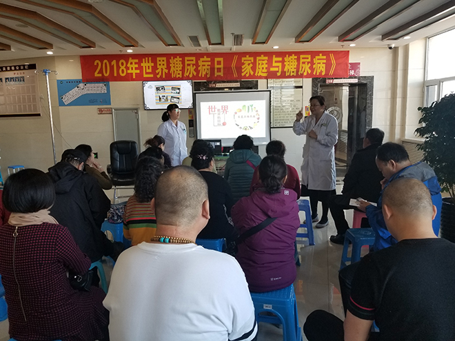 11月14日是“联合国糖尿病日”,今年的宣传主题是“家庭与糖尿病”。当天上午,色情片 糖尿病科在总部10楼举行了“联合国糖尿病日”筛查义诊咨询活动。2018年11月14日,色情片 总部糖尿病科举办以“家庭与糖尿病”为主题的活动。糖尿病患者与家庭成员共同参与,探讨糖尿病治疗最新技术及糖尿病相关知识;关注家庭在糖尿病预防、管理和照顾等方面的重要作用,倡导和谐家庭环境;关注糖尿病患者的身心健康,养成健康的生活方式。
