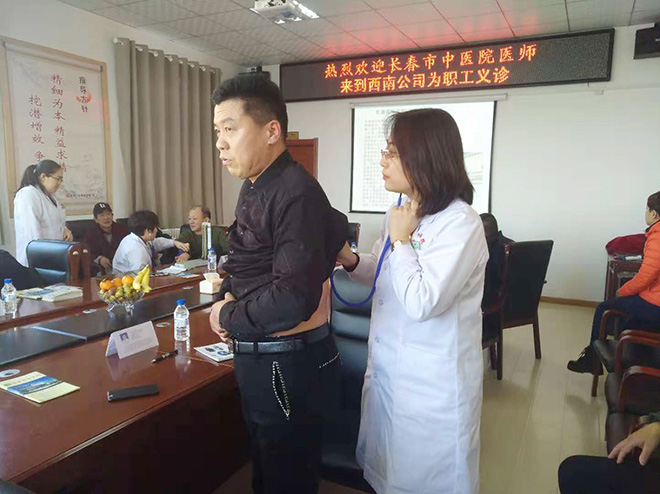 见到专家们,职工们把平日里困扰自己的问题统统说出来,以寻求治病良方。专家们仔细问诊,细心思量病情,给出诚恳意见。现场,专家们还为公交职工们进行按摩、针灸、听诊,一时间,西南公司的会议室俨然成了小型中医院。