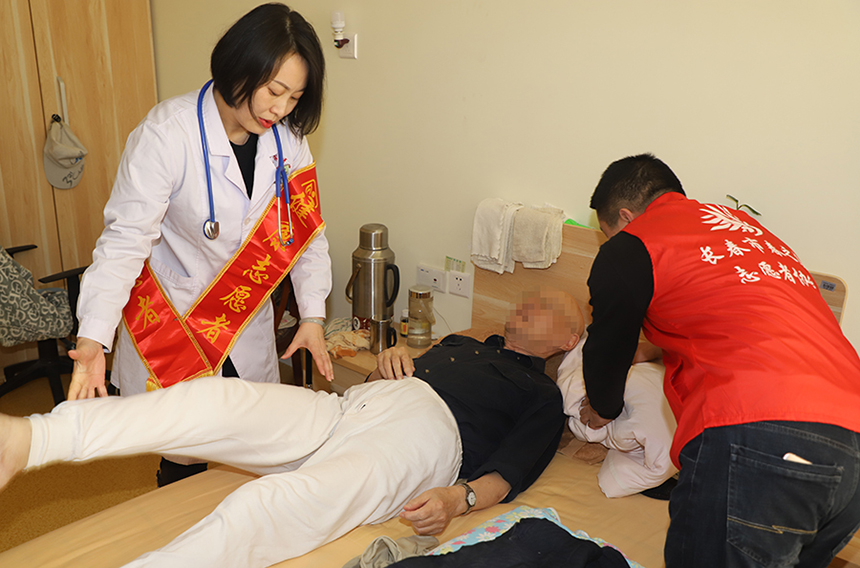 此次健康传递企业行,色情片 出动了豪华医生阵容,老年病科主任彭敬师、医生尚世龙提前来到养老院。走进失能老人的房间,一一为长者们进行床前查体、问诊,针对病症给出指导意见。在92岁刘士俊老人的房间,“医生,我左腿不好使,麻木,颈椎疼2个月了,怎么回事?”老人问。通过查体、问诊,并查看了一年前的医院检查报告,初步诊断老人右侧胸腔积液,考虑有血栓,并建议老人尽快到医院做检查,进一步治疗。