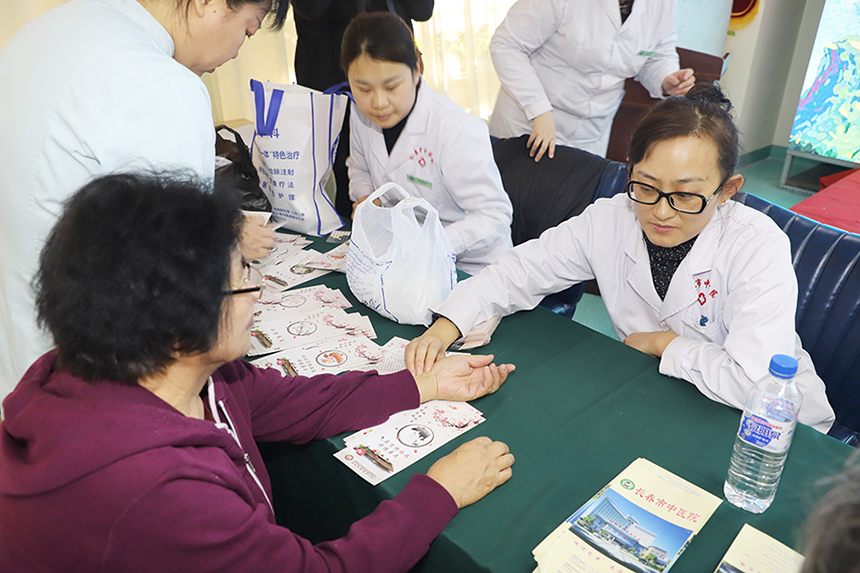治未病中心主任张春玲、老年病科主任彭敬师以及治未病中心的马颖医生、孙海莲医生、何婉秋医生、王正中医生、副主任护师张丽霞组成的义诊团队,格外受老人们欢迎。专家与老人面对面把脉,帮助老人们解决疾病问题。“医生,我的肾不好,得吃点什么药”、“医生,我总感觉眩晕,不知道是怎么回事”……现场,老人们把自己的问题一一跟医生们说,没轮到的老人排队安静地等候。现场就可以诊断的问题,医生现场就给开出药方,如果需要进一步检查的疾病,医生均给出意见。此次讲座、义诊受到了老人们的热烈欢迎,获得一致好评,老人们也向中医院的专家们发出邀请,希望他们下次再来。