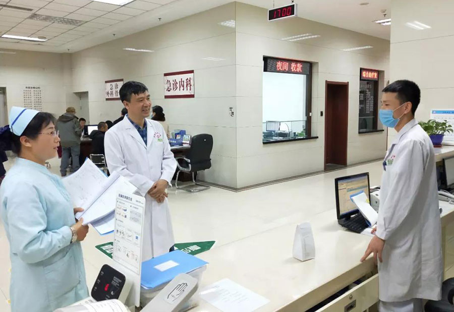 从1楼、2楼、3楼......一直到13楼,从急诊、药房、收款处......一直到疗区,杨启光副院长认真地对医护人员进行扫黑除恶工作的督导检查,并提出要求。
