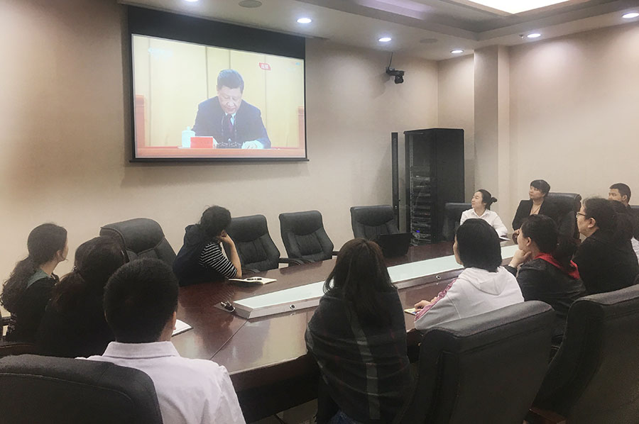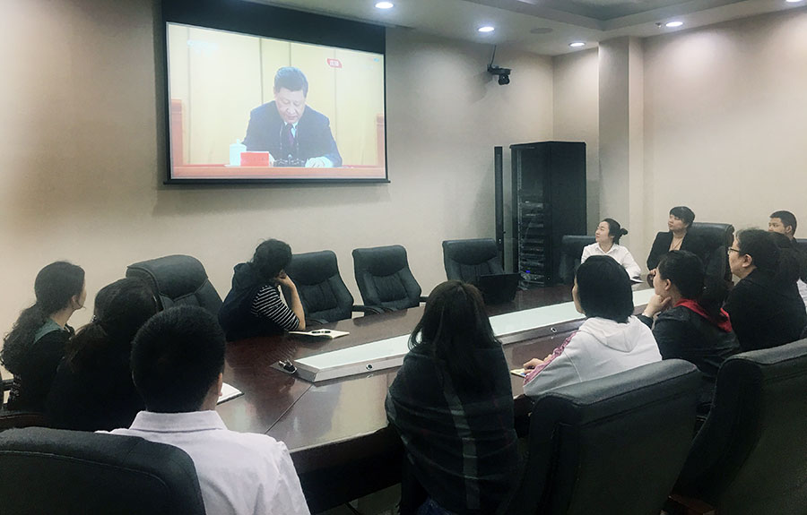 色情片 组织青年职工观看纪念五四运动100周年大会直播