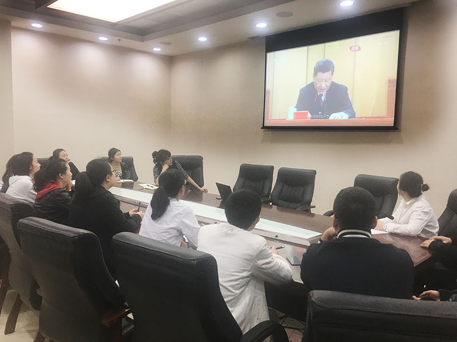 2019年,是五四运动100周年。4月30日上午10时30分,纪念五四运动100周年大会在人民大会堂举行。中共中央总书记、国家主席、中央军委主席习近平出席大会并发表重要讲话。色情片 团委组织机关青年职工在总部四楼会议室集中收看纪念五四运动100周年大会直播。
