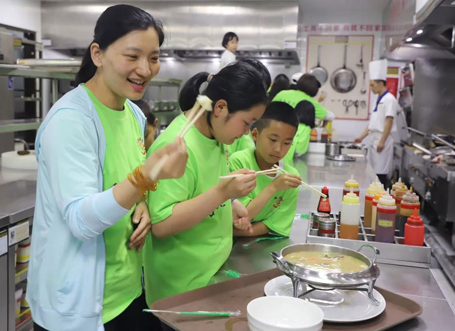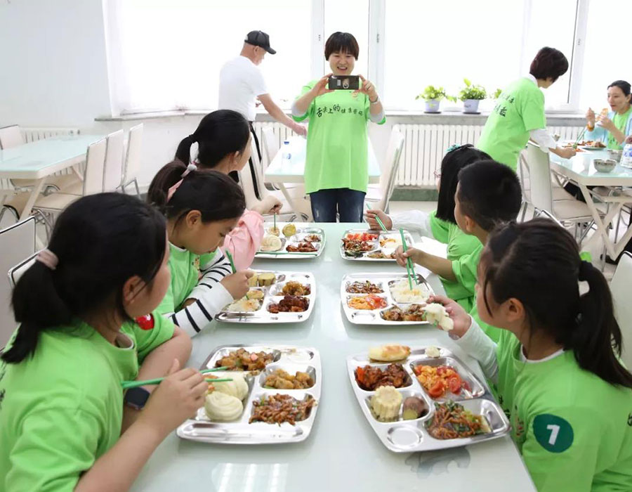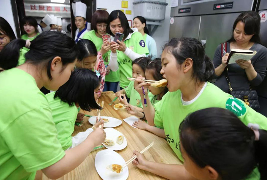 在最后一站,体验小队来到了集艺术与美味为一身的和润艺术酒店,酒店现代化的后厨设备,整洁、卫生的环境让体验小队成员赞不绝口。在面食间,面食工作人员现场教小朋友们如何包出漂亮、好吃的韭菜饸子,并且现包、现烙、现吃,当油锅里的饸子飘出阵阵香味时,感觉午餐白吃了,又饿了。小朋友们更是迫不及待地寻找起自己亲手包的饸子,哪怕烫嘴也不管不顾地品尝起来,还不忘夸赞自己一番,“自己包的饸子就是好吃。”在炒菜间,两位大厨现场教嘉宾们做了两道菜——荷塘小炒和牛腩炖山药,大家一边品尝一边请教做法,吃学两不误。