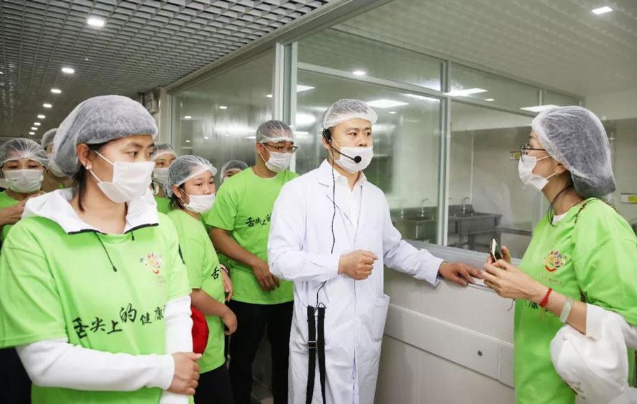 10元一盒的盒饭,看似平常,原来制作过程也非常严格,需要“过五关斩六将”才能上市销售。在吉林省嘉德餐饮文化有限公司,为了确保食品安全,8位家庭成员都换上了公司专门经过消毒的白大衣、一次性帽子和口罩、鞋套,每个人都通过“风淋室”吹灰后进入操作间。大家一路参观了洗消间、酱菜间、面食间。当一阵阵饭香从窗口飘出时,大家纷纷遗憾来早了,午餐时间来的话该有多好。