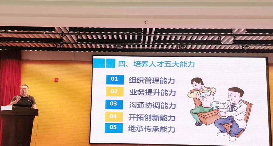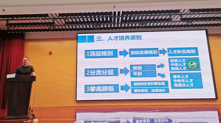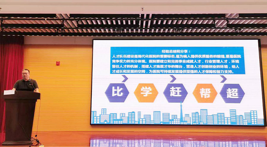 孙院长精彩的报告让与会人员听得津津有味。最后,他总结阐述,人才队伍建设是现代化医院的重要标志,医院要建立和完善事业成就人才,搭建人才施展才华的舞台,营造人才创新创业的环境,为医院可持续发展提供坚强的人才保障和智力支持。