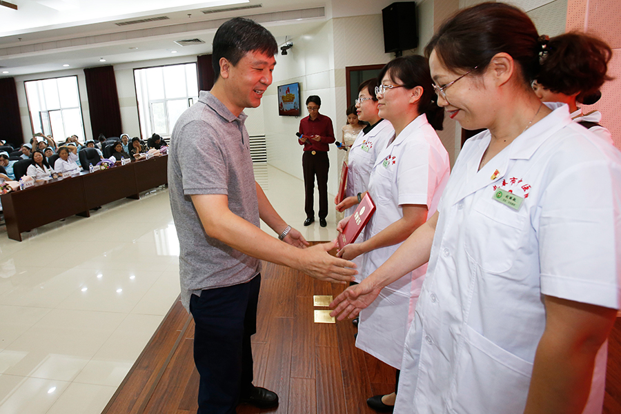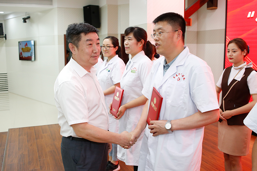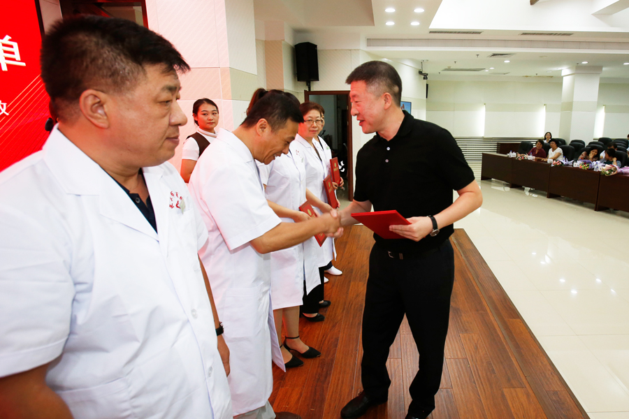 副院长石贵军宣读表彰名单,一本本红彤彤的荣誉证书是对优秀医师们的肯定,更是为所有医师树立起学习的榜样。
