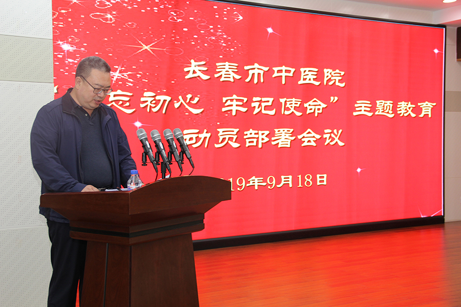 随后,长春市卫健委职业健康处处长高磊代表长春市卫健委党组对医院“不忘初心·牢记使命”主题教育动员部署会议作出指示,肯定了医院对本次主题教育活动的重视,行动迅速,及时传达学习委党组会议精神,并制定实施方案,为主题教育开展打下了坚实的基础。最后,高磊处长提出几点要求,要聚焦根本任务、把握“十二字”总要求、紧扣五句话目标、坚持“贯穿始终”、力戒形式主义抓好落实。