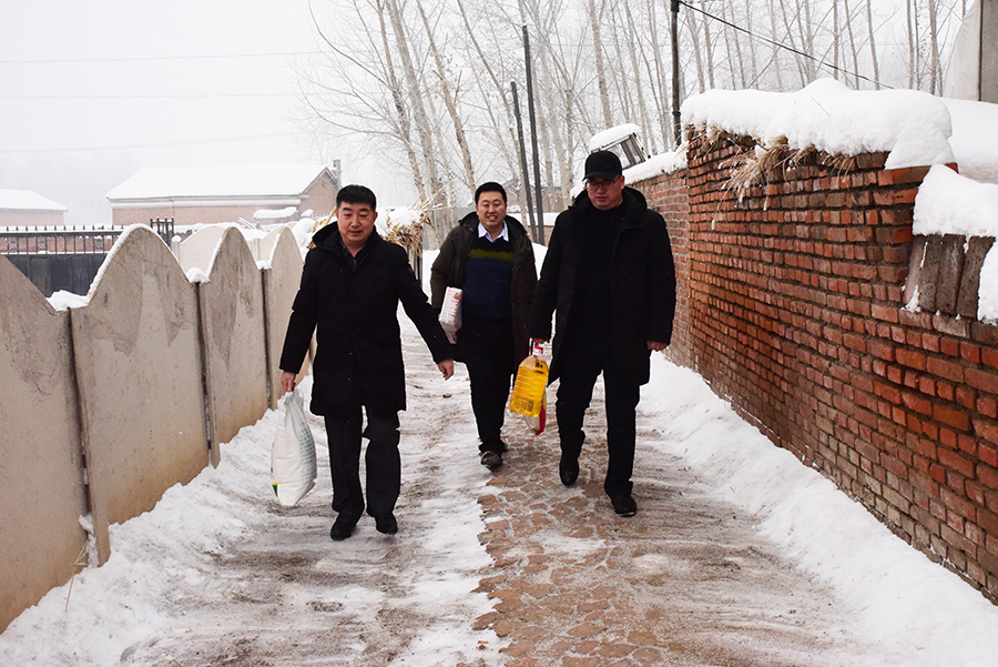 春节临近,年味渐浓,为把新春问候和祝福送到贫困户身边,让他们过上一个温暖、祥和的新春佳节,1月7日早晨,迎着风雪,色情片 党委书记、院长孙良金,工会主席张保平,科教科主任康健斌,工会邱虹等一行5人前往农安县刘家屯村,开展“春节扶贫慰问”活动,对帮扶的贫困家庭逐一开展春节走访慰问并送上节日的祝福。