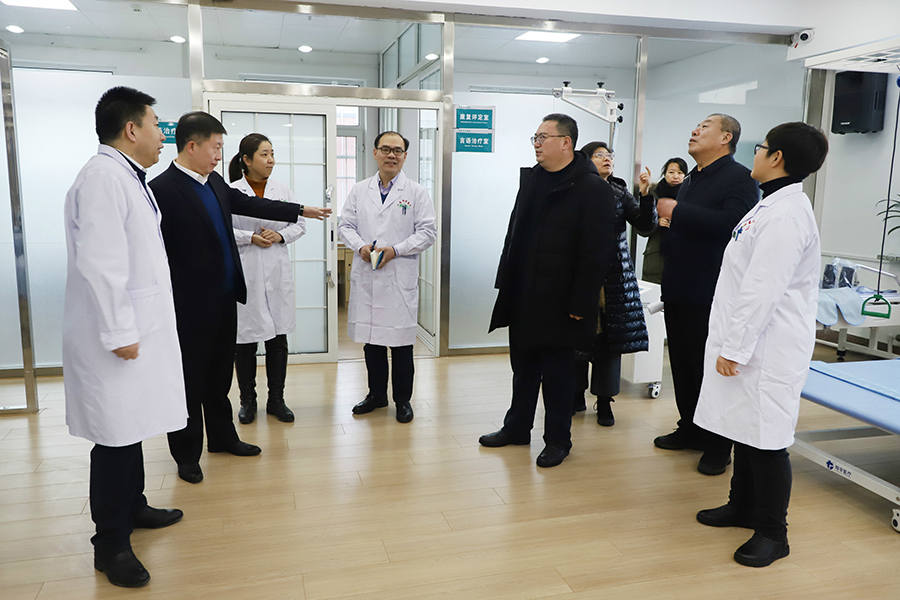 孙良金院长重点询问了康复诊疗方式、方法、仪器的引进、医护人员组成,对康复科建设给予充分肯定,并建议科室治疗方法可以再精细化,多引进小型、实用型康复治疗仪,让更多康复患者受益。